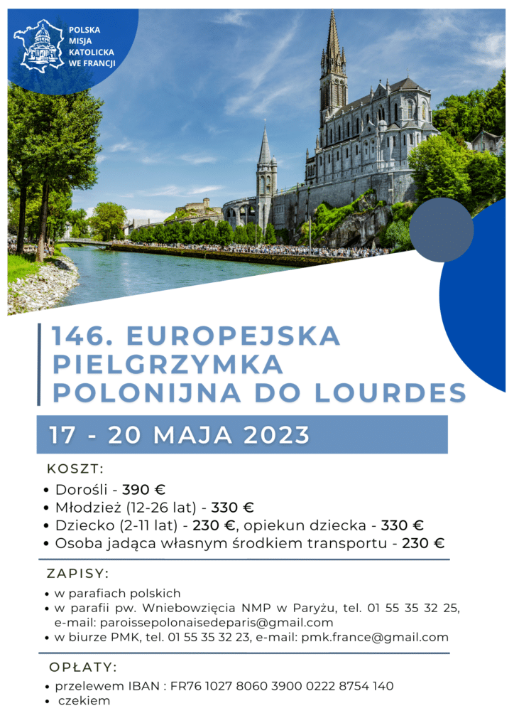 Zawieziemy Maryi sprawy naszej Ojczyzny, a przede wszystkim chcemy zawierzyć Jej sprawę pokoju na Ukrainie i w Europie. Zapraszam Was bardzo serdecznie do Lourdes – powiedział delegat KEP ds. Duszpasterstwa Emigracji Polskiej bp Piotr Turzyński. W dniach 17-20 maja br. już po raz 146. odbędzie się Europejska Pielgrzymka Polonijna do Lourdes, którą organizuje Polska Misja Katolicka we Francji. Zapisy trwają do 30 kwietnia.