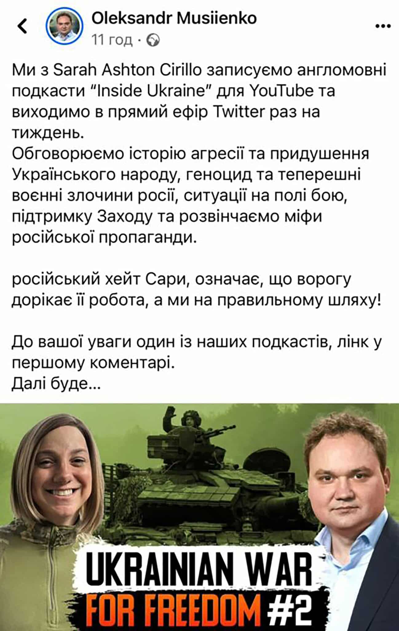 Sarah Ashton-Cirillo jest więc ważnym głosem realiów dzisiejszej Ukrainy w walce z rosyjską agresją. W tym przypadku masowe szerzenie nienawiści na jej temat działa na korzyść Ukrainy.