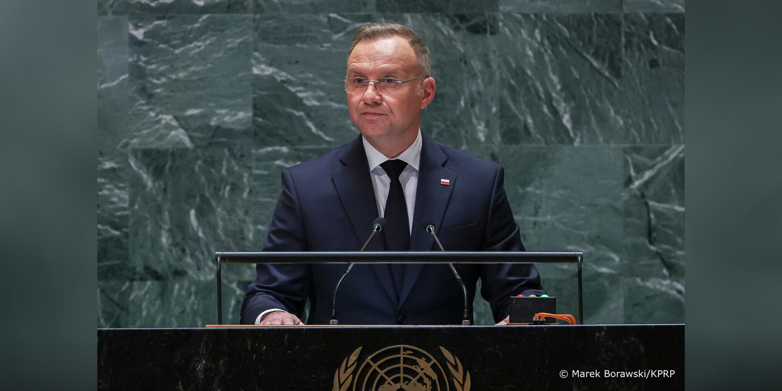 Dzisiaj po raz kolejny stajemy w obliczu niezwykle poważnego zagrożenia dla globalnego bezpieczeństwa. Zaznaczył, że od dwóch i pół roku jesteśmy świadkami brutalnej agresji Rosji na sąsiednią Ukrainę; to rażące naruszenie podstawowych norm prawa międzynarodowego, takich jak zakaz użycia siły w stosunkach międzynarodowych, ostrzegł prezydent Andrzej Duda w trakcie przemówienia w debacie generalnej 79. sesji Zgromadzenia Ogólnego ONZ.