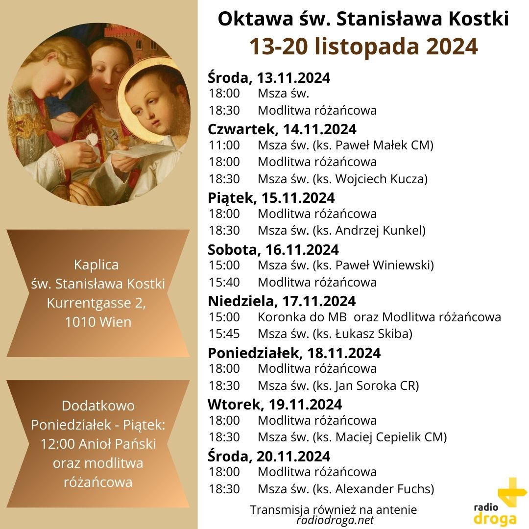 Oprócz Mszy świętych w języku niemieckim, celebrowanych głównie przez wiedeńskich jezuitów, odbywa się już po raz kolejny oktawa w języku polskim. Do sprawowania Eucharystii zaproszeni są polscy kapłani posługujący w wiedeńskich parafiach. Msze święte oraz modlitwy różańcowe transmitowane są za pośrednictwem polonijnego katolickiego Radia Droga (radiodroga.net). Redaktorzy radia zainicjowali w tym roku również modlitwę południową – „Anioł Pański” – oraz modlitwę różańcową. Mogą w niej uczestniczyć czynnie i spontanicznie wierni, przebywający w tym czasie w kaplicy. A modlić można się we wszystkich językach.